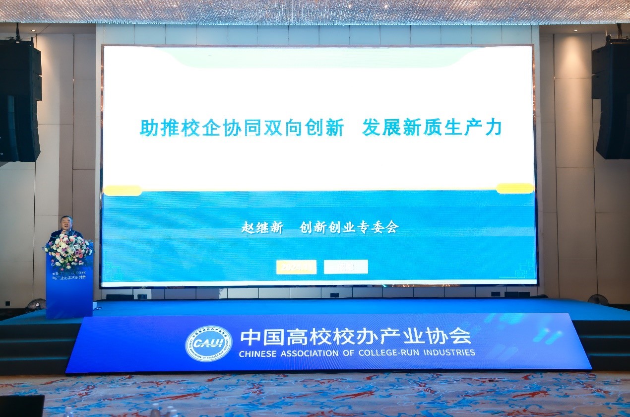 在研讨会上,365英国上市公司官网院长赵继新教授作为中国高校校办产业协会创新创业专业委员会会长做了名为《助推校企协同双向创新 发展新质生产力》的主题报告。解析了新质生产力、全要素生产率和高质量发展的内涵,提出加快培育新质生产力的重点工作,并结合科技、教育和人才三个重大发展战略阐述创新创业专业委员会的工作目标、专注领域和工作方向,为企业和高校实现双向赋能发展搭建平台。