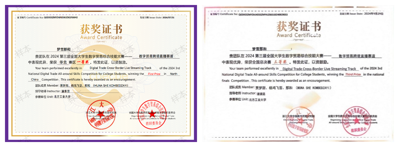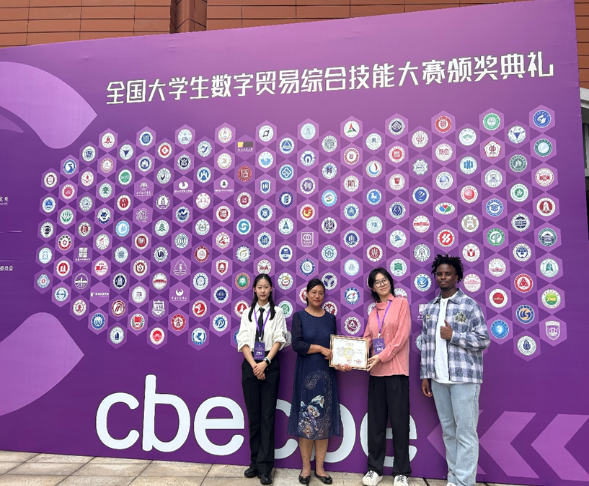 近日由浙江大学中国数字贸易研究院主办、全国大学生数字贸易综合技能大赛组织委员会承办的第三届全国大学生数字贸易综合技能大赛总决赛在浙江大学圆满落幕。365英国官网学生贾孟甜、那和、杨鸿飞雪组成的代表队在华北赛区区域赛中获赛区一等奖,在全国总决赛中获全国三等奖。