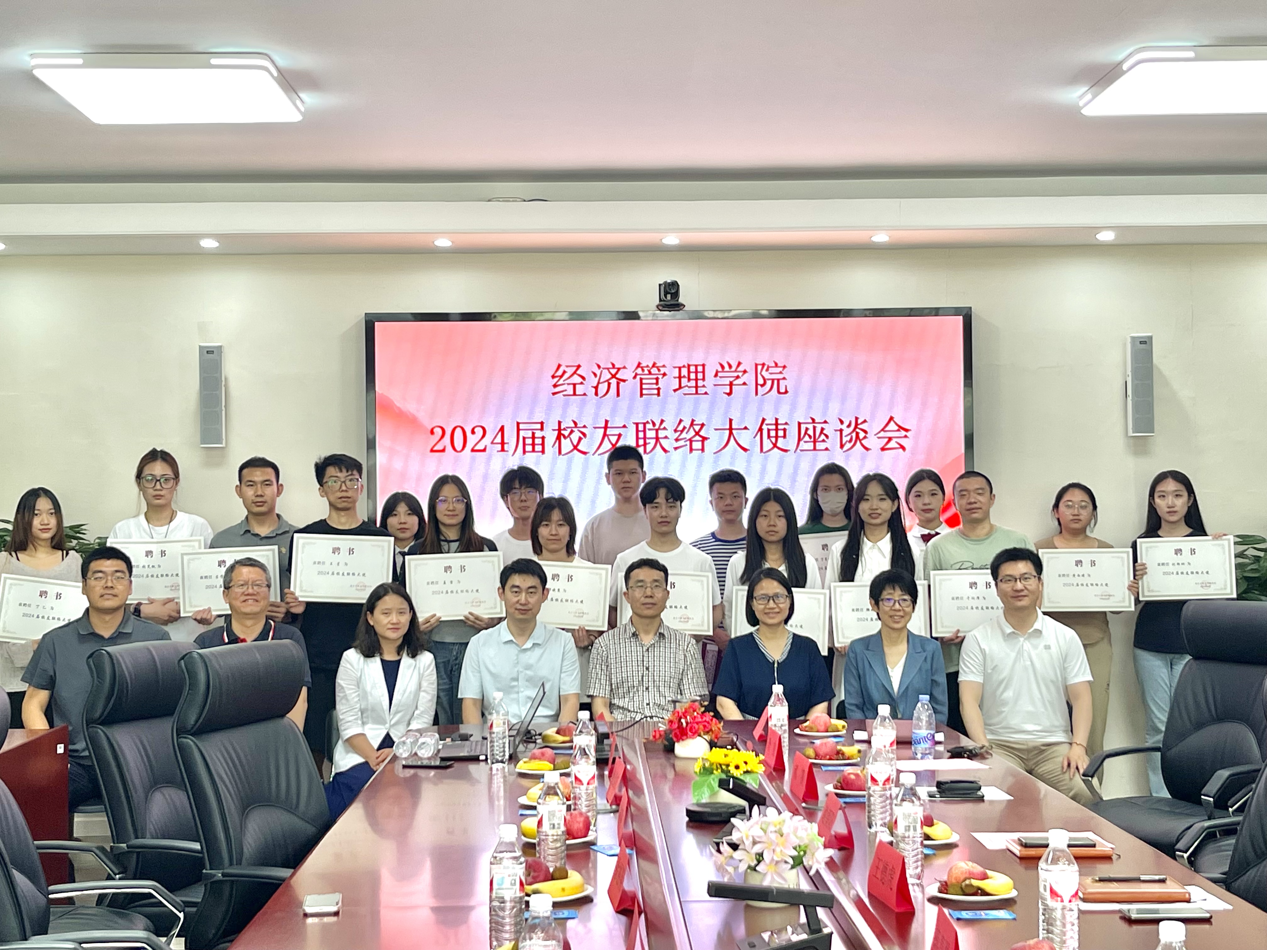最后,谢朝阳、王德虎共同为学院2024届校园联络大使颁发聘书,并合影留念。