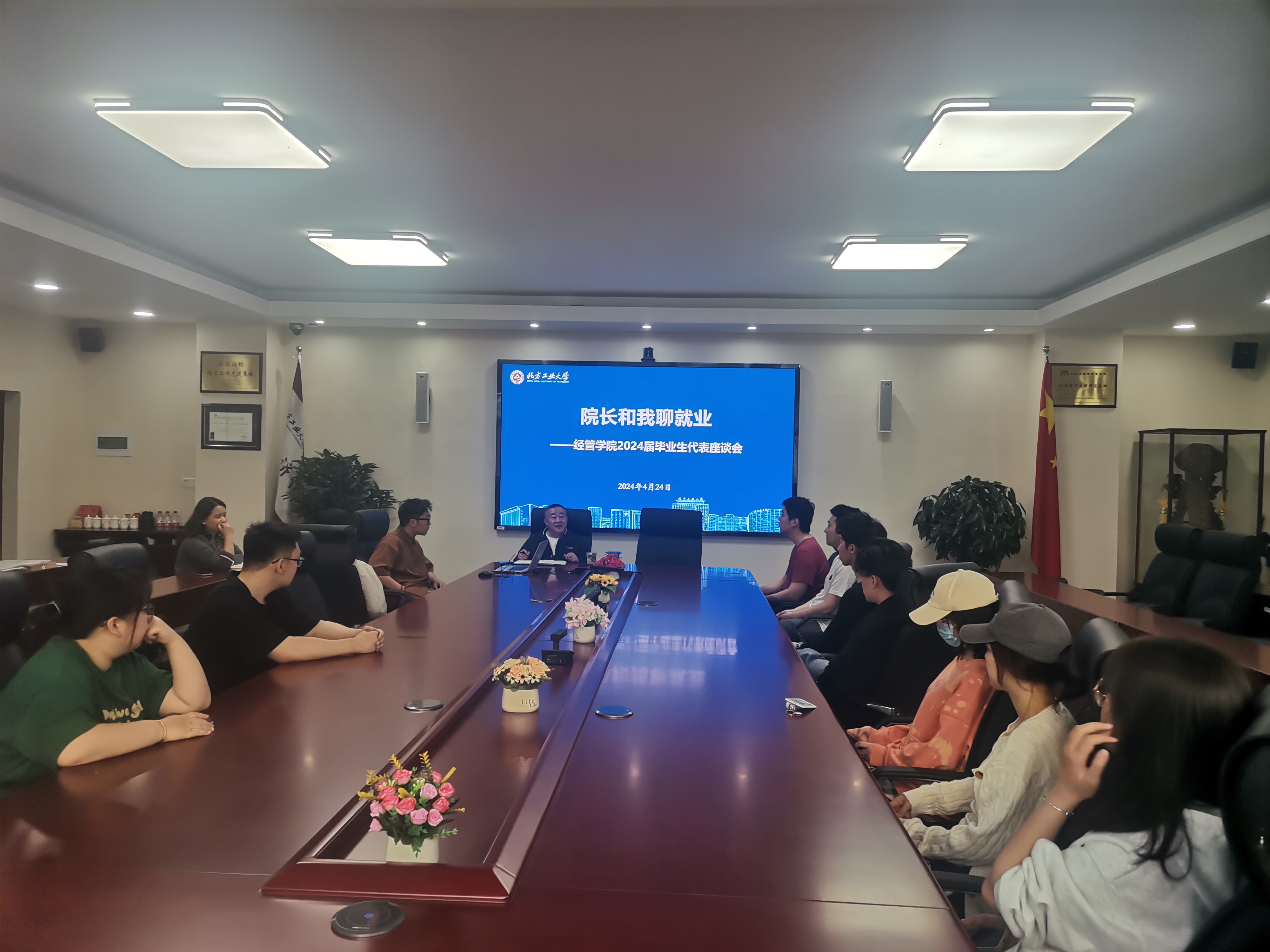 为深入推进学院2024届毕业生就业工作,了解学生需求,帮助学生树立正确就业观,精准服务学生就业,4月24日下午。365英国上市公司官网在励学楼201会议室召开“院长和我聊就业”——毕业生代表就业座谈会。学院院长赵继新,党委副书记王帏,辅导员吴芳、张泽圣以及20余名毕业生参加活动。