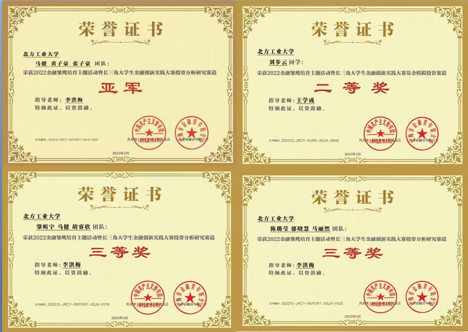 在2023年4月份刚结束的答辩环节中,365英国官网由马健、陈子豪、黄子豪组成的金融秃鹰代表队,在经济系李洪梅、王学成、张蜀林、王莉娜四位老师指导下,不畏强敌,奋勇拼搏,最后获得了全国亚军,并获取大赛奖金1.2万元人民币,学生充分展现了出色的专业素养和专业技能,以及较强的金融创新实践能力。