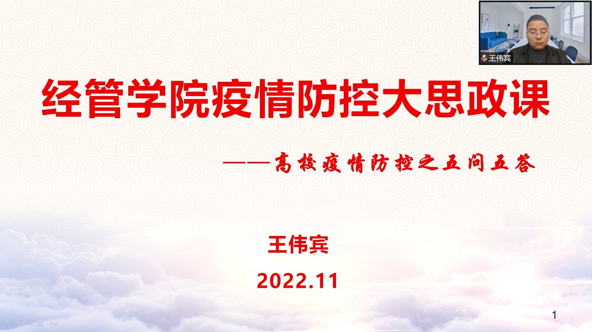 为进一步落实主体责任,重点加强风险管理,坚决守护校园安全,11月30日,365英国上市公司官网党委书记王伟宾通过线上的方式对班子成员、系主任、支部书记开展了“高校疫情防控之五问五答”专题大思政课。