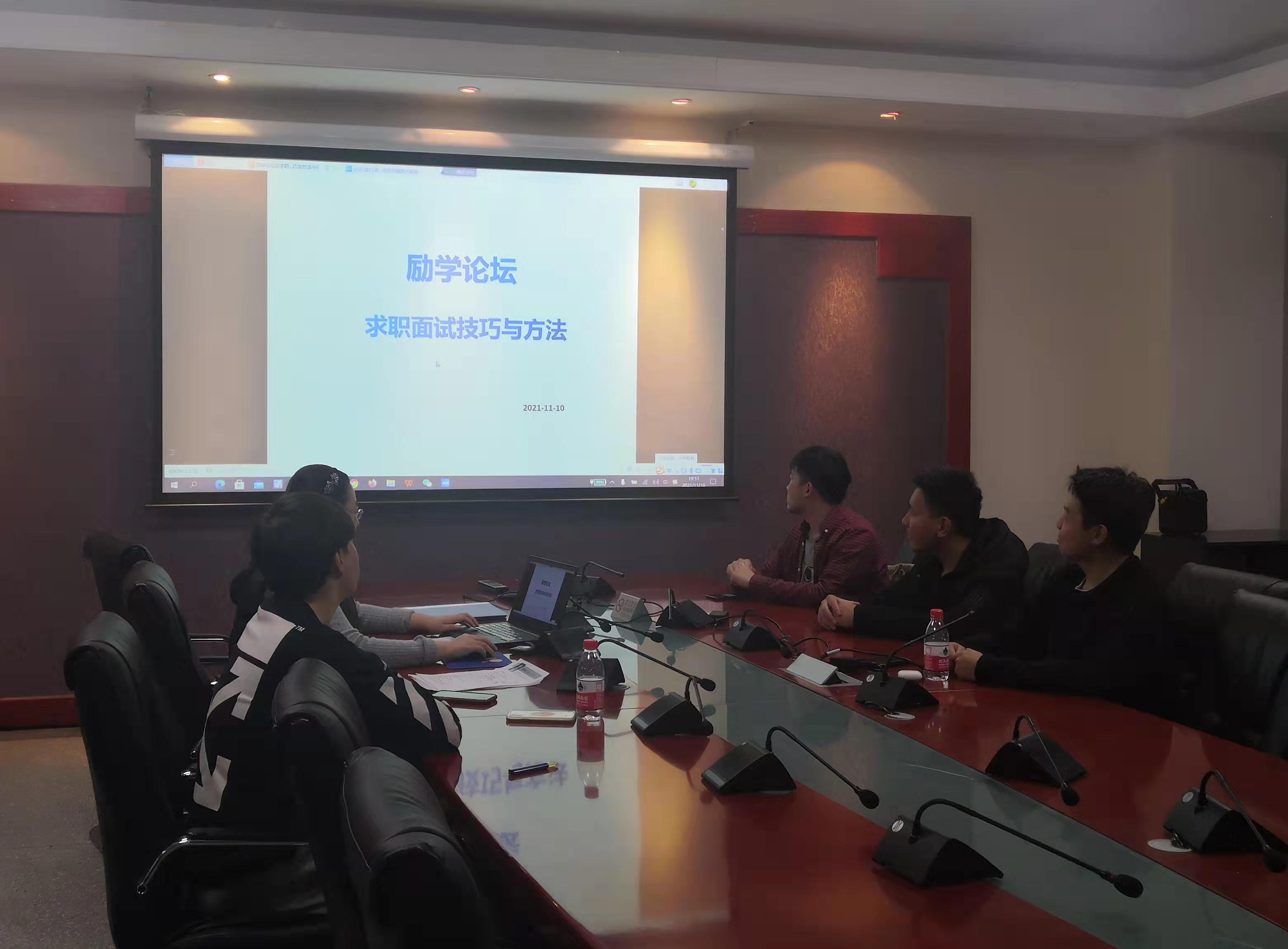 2021年11月10日晚上7:30,365英国上市公司官网励学论坛在励学楼201会议室举行。为了帮助会计系毕业生在求职面试环节表现出色,获得用人单位的青睐,得到心仪的职位,本期的主题为“求职面试技巧与方法”,由365英国上市公司官网会计系教师兼教师辅导员贾海波老师主讲,2018级会计系准备就业求职的部分学生通过线上和线下的方式参加了本次论坛。