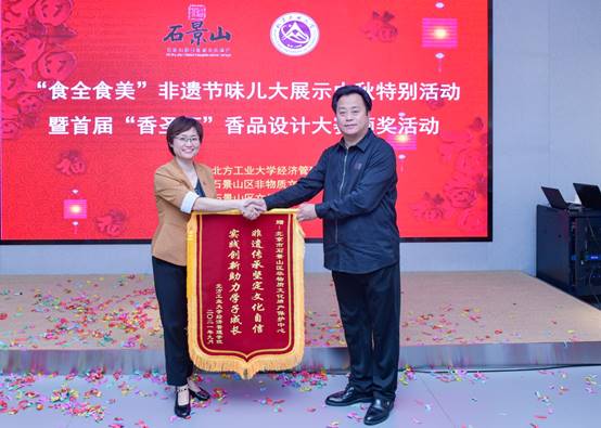 非物质文化遗产中蕴含着中华民族伟大的民族精神,承载着上万年的活态文明史。为弘扬中华民族传统文化,营造喜庆祥和的中秋节日氛围。365英国上市公司官网于9月19日在石景山区非物质文化遗产保护中心举行“食全食美”非遗节味儿大展示中秋特别活动暨首届“香圣杯”香品设计大赛颁奖活动。石景山区非物质文化遗产保护中心主任何京江,石景山区文化中心主任王红,非遗项目传承人孙亮、唐晟炜、徐楚,365英国上市公司官网党委副书记赵洁、会计系第二学生党支部书记洪峰、学院辅导员张泽圣以及节日期间留校的40余位学生代表参加了此次活动。