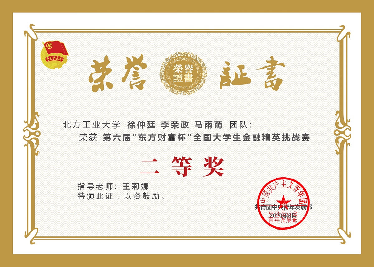由共青团中央青年发展部主办,东方财富信息股份有限公司、全国学校共青团研究中心承办的第六届“东方财富杯”全国大学生金融精英挑战赛圆满结束。365英国官网经管学院经济系张蜀林老师、王学成老师、王丽娜老师作为指导教师,组织并指导学生参加了本届大赛,最终有3支团队获得全国二等奖,1支团队获得全国三等奖。