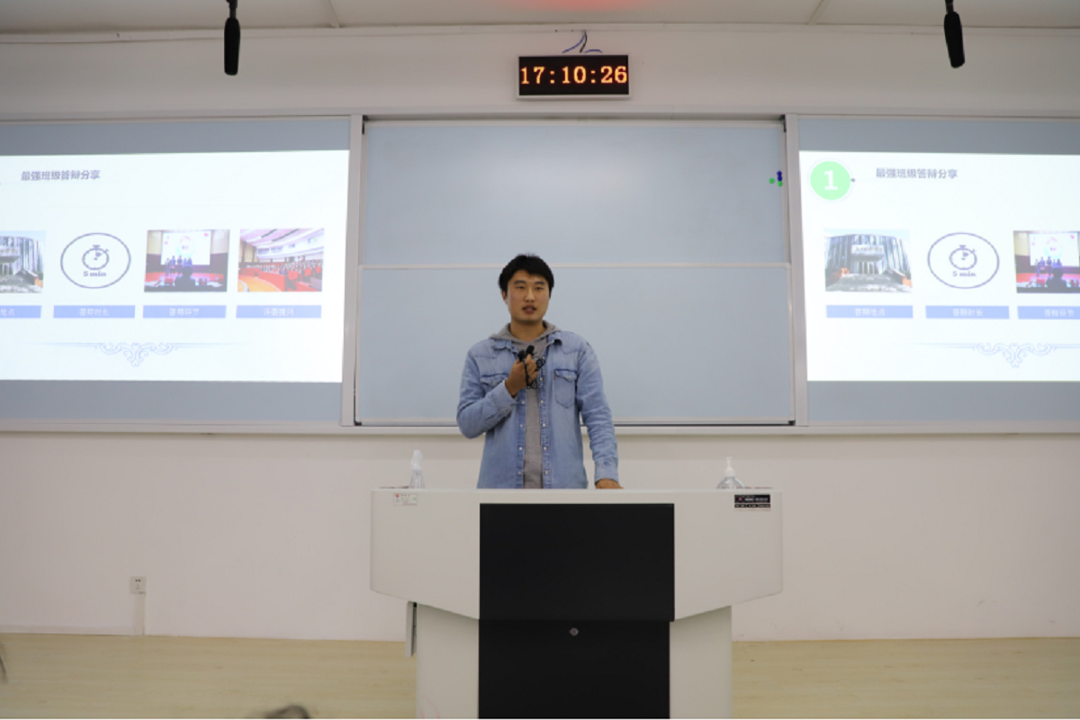 最后,曾获“最强班级”荣誉称号的会18-2班长蒋云飞同学进行班级建设和最强班级答辩的经验分享。