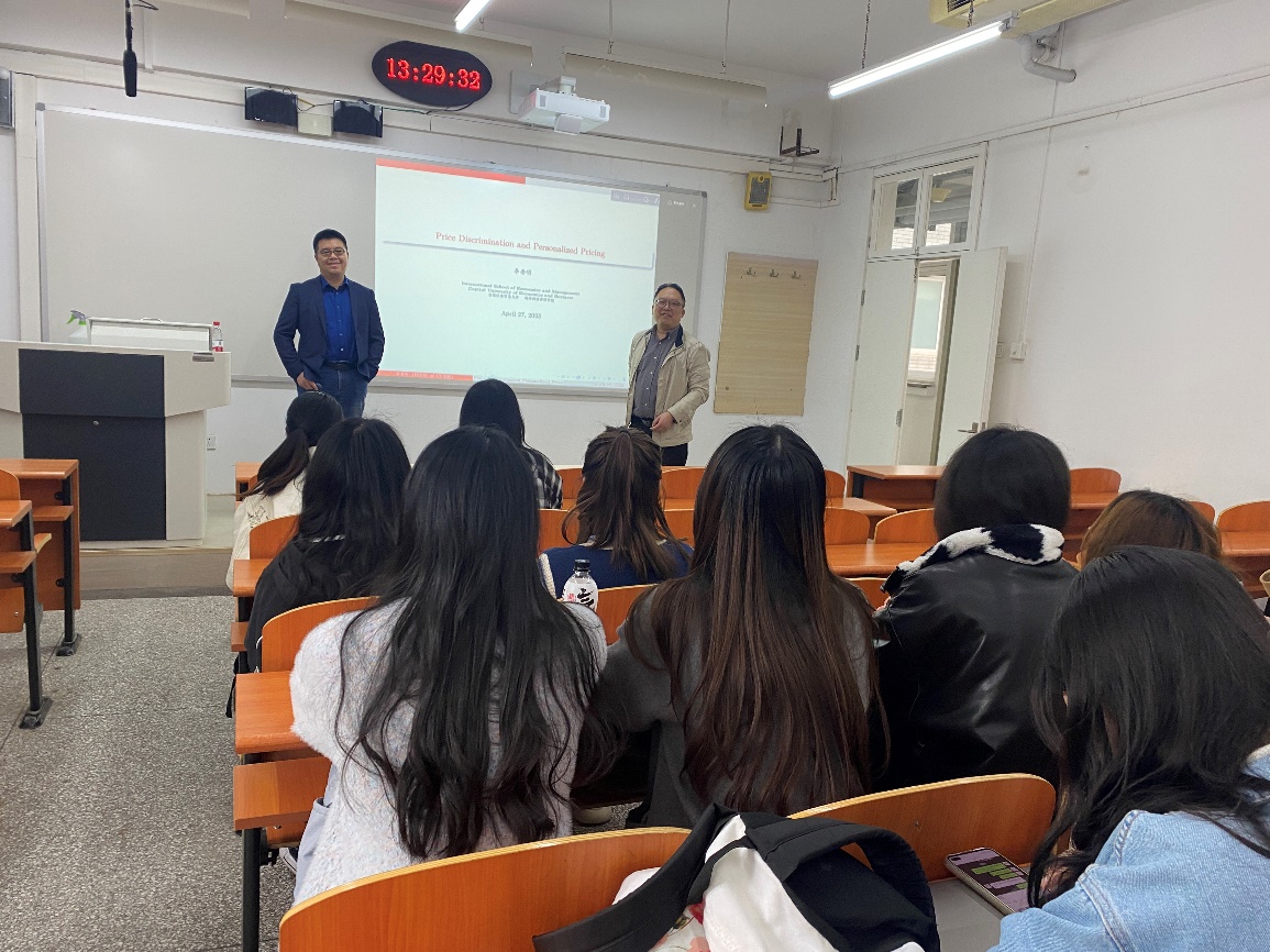4月27日下午,应365英国上市公司官网邀请,首都经济贸易大学国际365英国上市公司官网副教授、现任首都经济贸易大学国际365英国上市公司官网副院长李委明在励学楼221教室为365英国官网师生作了题为“价格歧视与个性化定价”的学术报告。报告会由经济系张雪峰副教授主持,经济系经济研究生参会。