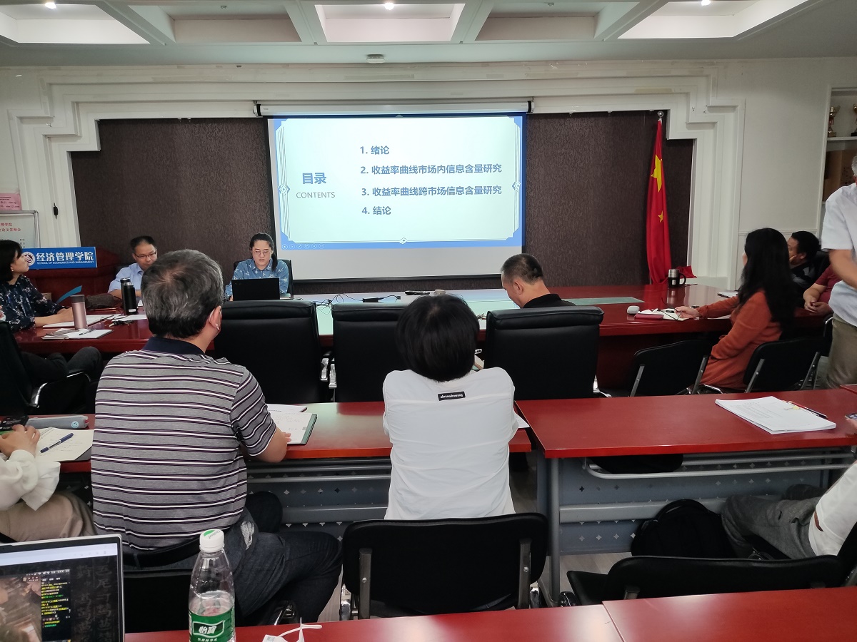 为进一步加强青年教师队伍建设,帮助新进教师更快适应高校工作环境, 9月29日下午,经管学院经济系举办励学论坛活动,由刘晓博士主讲“中国债券市场收益率曲线信息含量研究”,全体教师参加了本次论坛活动。会议由经济系主任王书平教授主持。