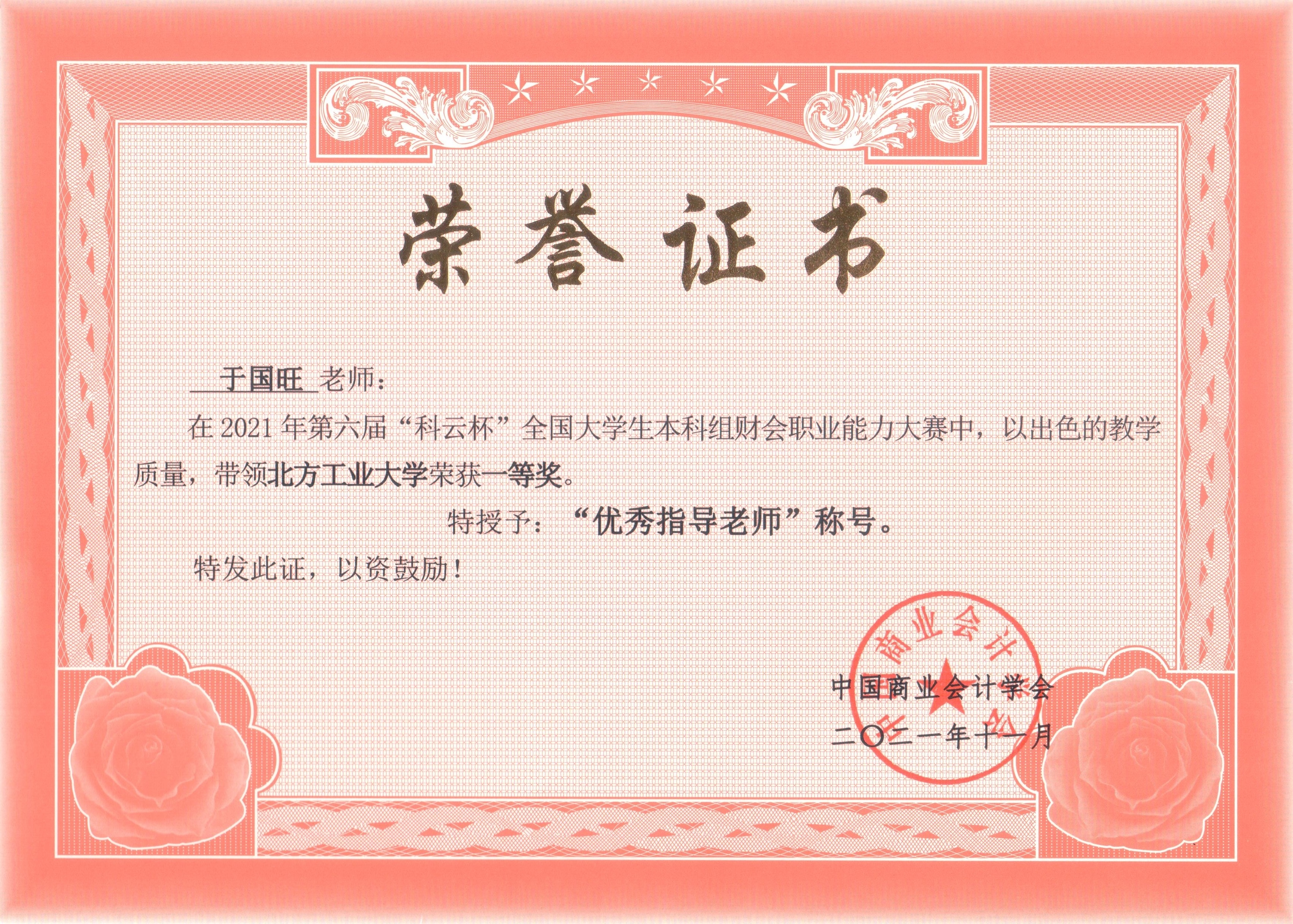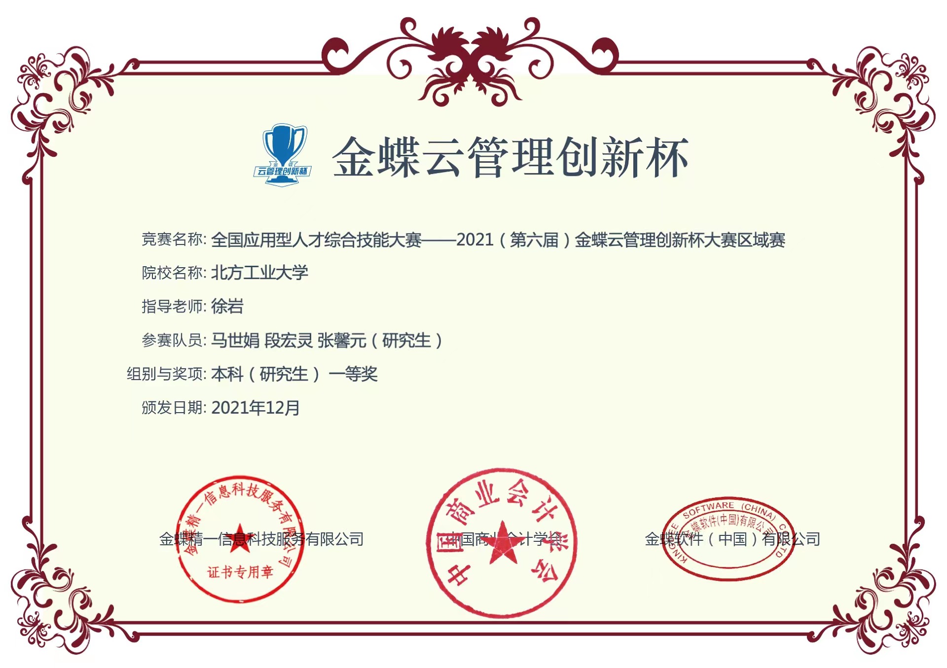 2021科云杯全国大学生财会职业能力大赛一等奖 |