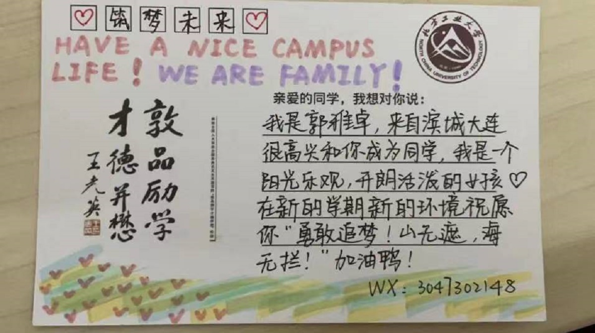 伴随着“破冰信笺”,学院还开展了以新生宿舍为单位的“入校纪念手册”活动,旨在记录宿舍同学相识相知的过程。