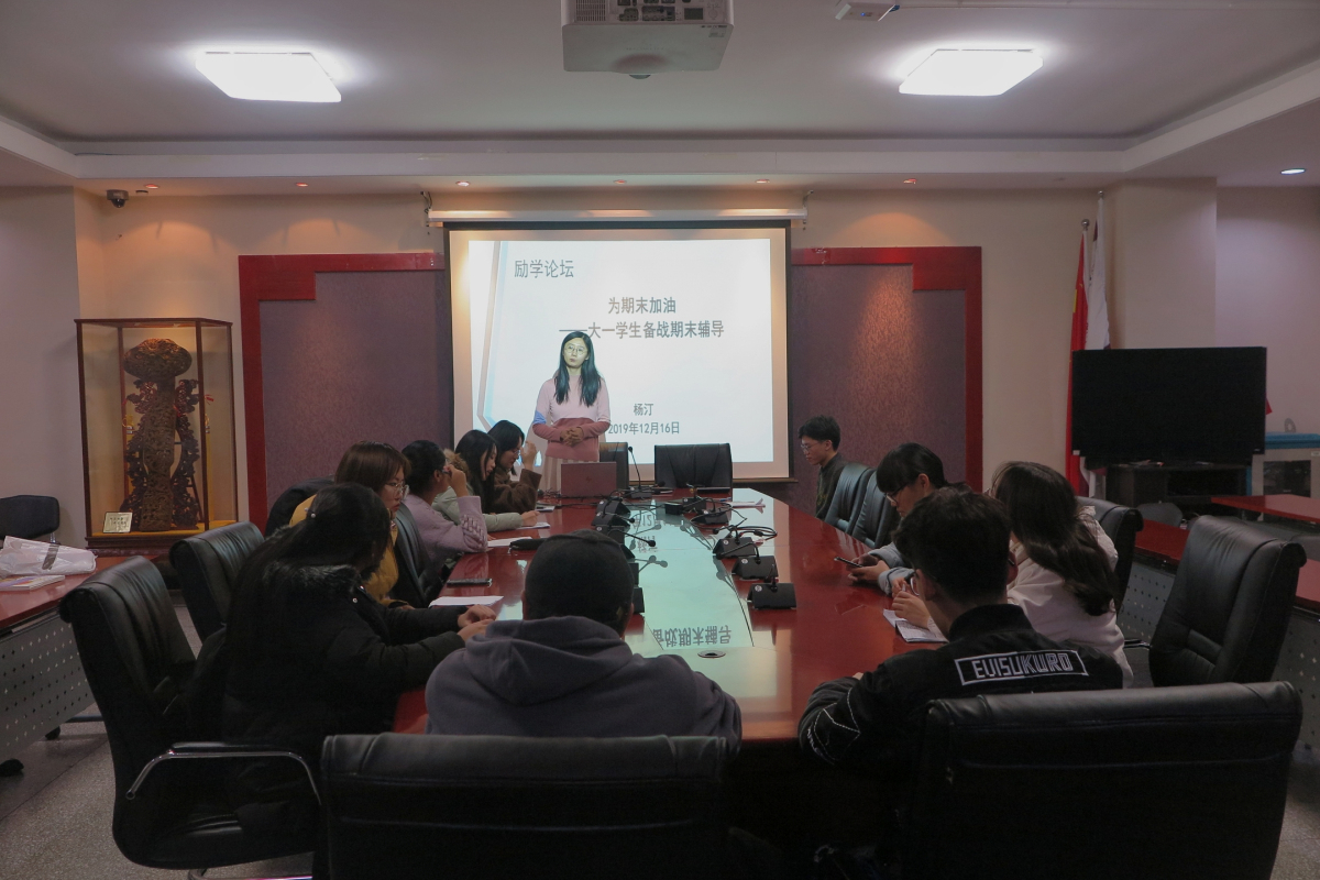 12月16日晚,365英国上市公司官网励学论坛在励学楼201举行。本期论坛主题为“为期末加油——大一学生期末复习方法分享”。论坛由教师辅导员杨汀主持,经管学院大一各专业同学参加了此次论坛。