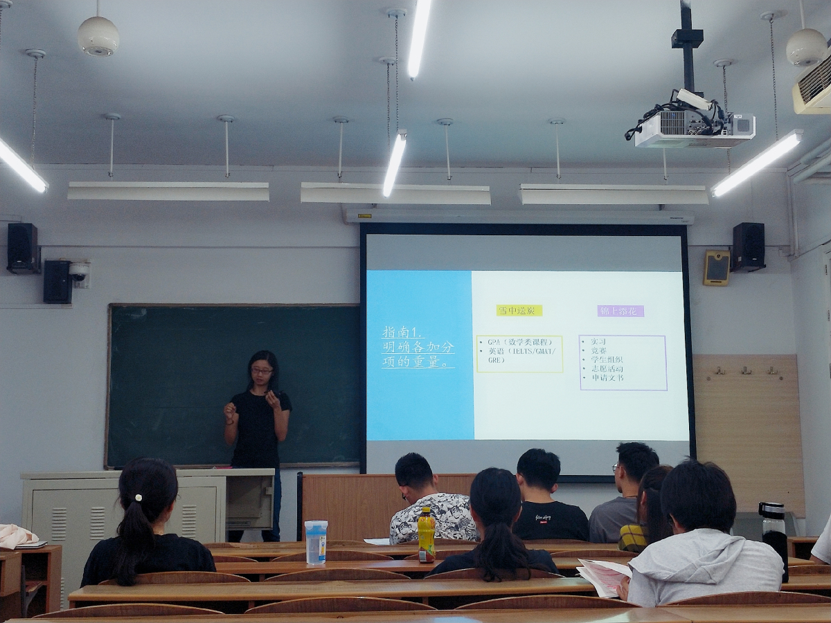 最后,杨老师勉励大家:出国留学是一条艰苦之路,需要从大一就开始努力提高绩点和英语成绩,在重视绩点和英语的同时,也要多参与实习、志愿等活动。希望大家最后不仅能收到满意的名校offer,更收获了一段无怨无悔的大学时光。