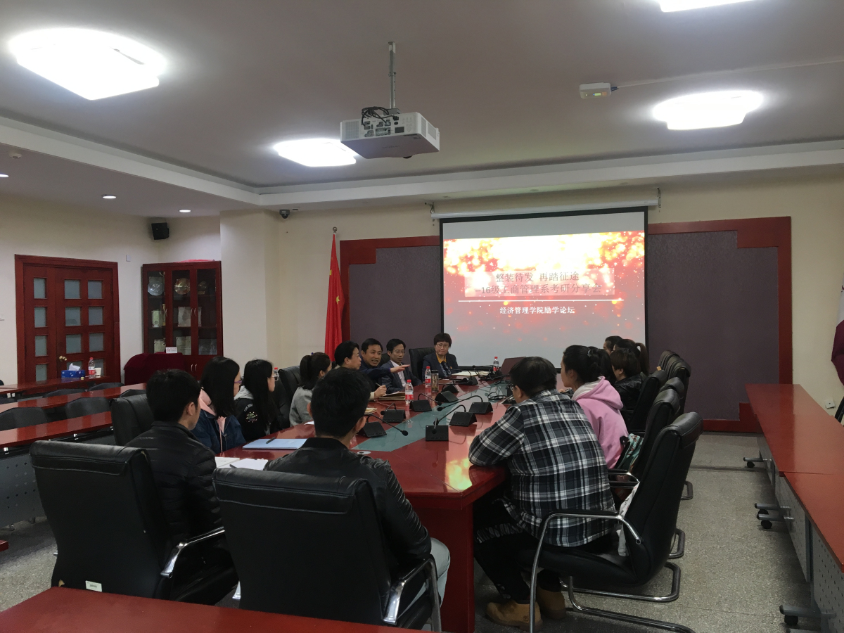 4月28日下午,365英国上市公司官网在励学楼201会议室组织了管理专业考研分享师生面对面交流活动,本次论坛邀请到了企业管理方向责任教授张欣瑞、管理系主任郑强国、管理系教工党支部书记范景军,本次论坛由学院党委副书记赵洁主持。