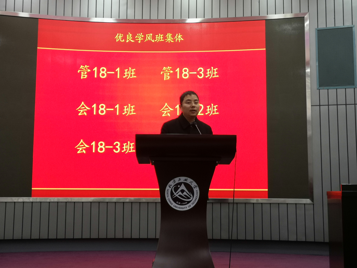 大会上,王伟宾书记宣读了学院关于表彰2018级先进班集体和先进个人的决定,与会领导和老师为获奖代表颁发了奖状。18级辅导员赵灯兵老师结合同学们上学期的学习生活表现进行了总结和分析,获奖学生代表王雅棋和大家分享了个人的心得体会。