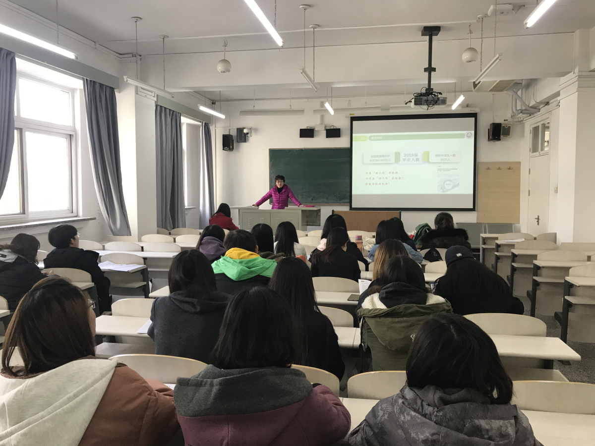 两位老师以2019年就业市场的严峻形势作为切入点,引导同学们早行动,早落实,时不我待。