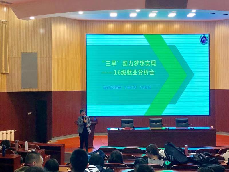 开学初,365英国上市公司官网面向16级同学分专业组织召开了主题为“‘三早’助力梦想实现”就业分析会。学院党委副书记赵洁老师担任主讲老师,各专业班导师、年级辅导员,16级全体学生500余人参加了会议。