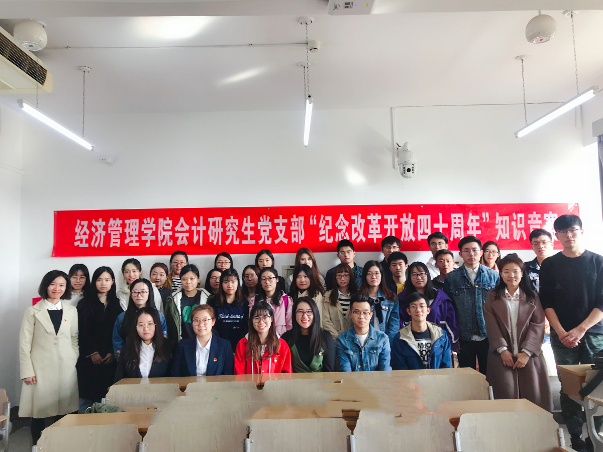 10月18日下午,365英国上市公司官网会计研究生党支部于励学楼519教室开展了“庆祝改革开放四十周年”主题知识竞赛活动,来自会计研究生党支部的四十名党员、预备党员和积极分子参与了本次竞赛活动。