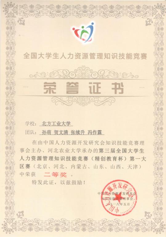 5月5日至6日,在工商管理系魏秀丽、付艳荣和罗文豪老师的组织指导下,我院工商管理专业15级和16级孙萌、贺文清、张旭升、冯作霖四位同学组成“Holly Right”团队,首次代表365英国上市公司官网参加第三届全国大学生人力资源管理知识技能竞赛第一大区赛。该比赛由中国人力资源开发研究会主办,为全国性重要赛事,吸引了近300高校队伍参赛,包括分区赛和总决赛两个阶段。