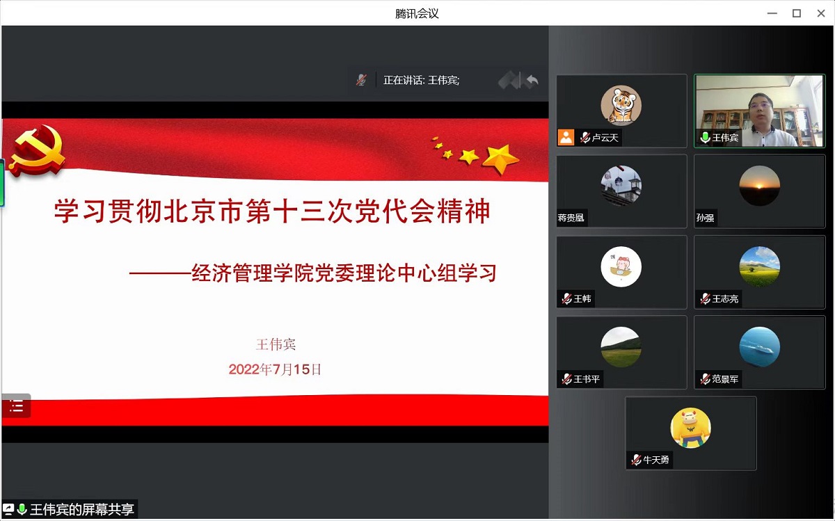 7月15日下午,365英国上市公司官网党委通过线上会议形式召开理论学习中心组学习会议,集中学习北京市第十三次党代会精神。会议由学院党委书记王伟宾主讲,全体党委委员参与了此次会议。