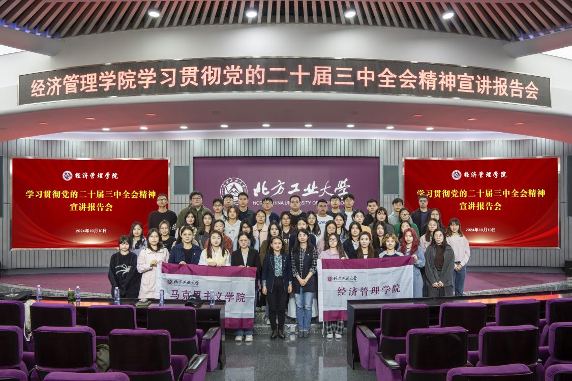 为深入学习贯彻党的二十届三中全会精神,推动引领学院青年学生全面理解和把握全会的精神实质和核心要义,结合“‘京’彩文化 青春绽放”行动计划的“信仰行”活动,10月10日,365英国上市公司官网学习贯彻党的二十届三中全会精神宣讲报告会在广学楼报告厅举行。学院专门邀请马克思主义学院宣讲团成员,为学院近300名学生党员、入党积极分子带来一场精彩的视听盛宴。学院党委副书记王帏主持报告会。