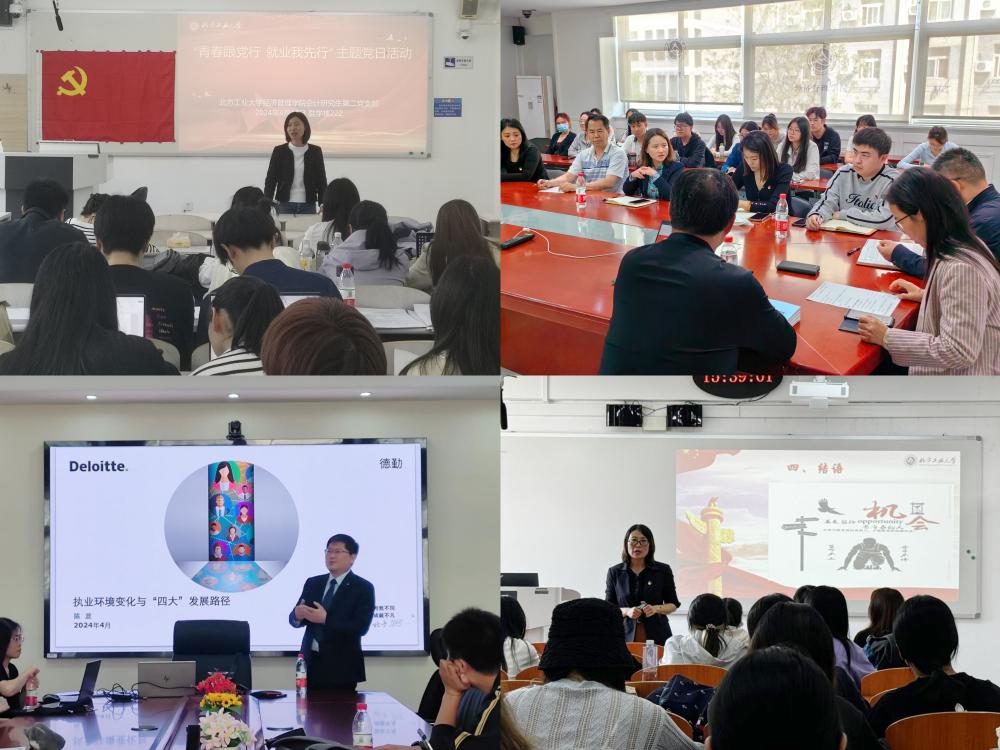 为进一步发挥党建引领作用,不断提升党员教育管理质量,结合学院当前工作重点,经管学院党委以本学期党支部活动日为契机,组织各学生党支部开展“青春跟党行 就业我先行”就业主题党日活动,在教师党支部开展“为2024届毕业生就业办实事”公开承诺活动。