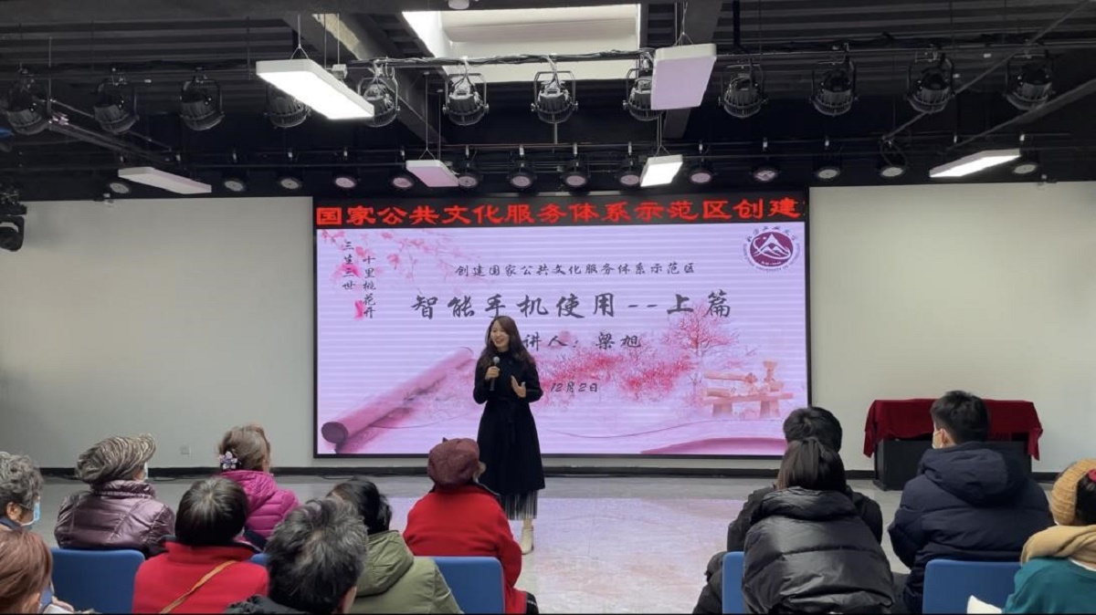 合照过后是本次活动的重要环节——“智能手机常用功能教学”及“防诈骗知识普及”。梁旭同学首先针对智能手机的连接无线网络、下载软件、制作精美相册进行讲解,在梁旭同学的讲解间隙,其他在场的同学们纷纷来到老党员身边,为老党员现场示范教学内容并积极回答老党员们的问题。接着,董晨溪同学针对微信的常用功能进行了示范讲解,帮助不太熟悉微信操作的老党员学会视频、语音通话以及发朋友圈。最后,吕彤同学对老党员进行了防诈骗知识的普及;同时,吕彤同学与老党员们进行了积极愉快的互动,为老党员们介绍了多种防诈骗小妙招。