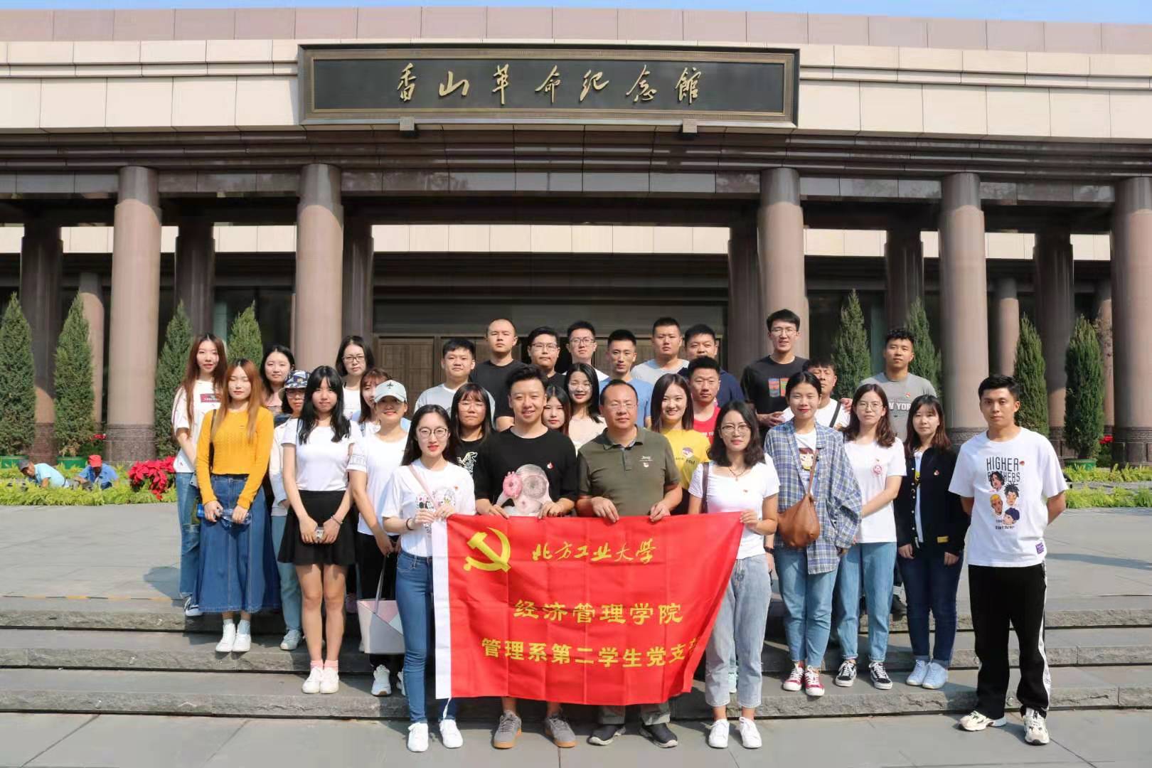 新学期伊始,正值中华人民共和国成立七十周年,为贯彻我党“不忘初心,牢记使命”的十九大精神,2019年9月28日早9点,由管理系第二学生党支部书记马亚东老师带队,支部学生党员及积极分子共35人前往香山革命纪念馆,参观了《为新中国奠基——中共中央在香山》主题展览,感受那段激昂奋进的光辉岁月!
